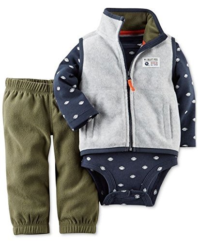 Carter's(カーターズ) ベビー ボーイズ フリース ベスト / ボディスーツ / フリースロングパンツ 3点セット (アメフト柄) Baby Boys' 3-Piece Vest Bodysuit & Pants Set (6M(60))