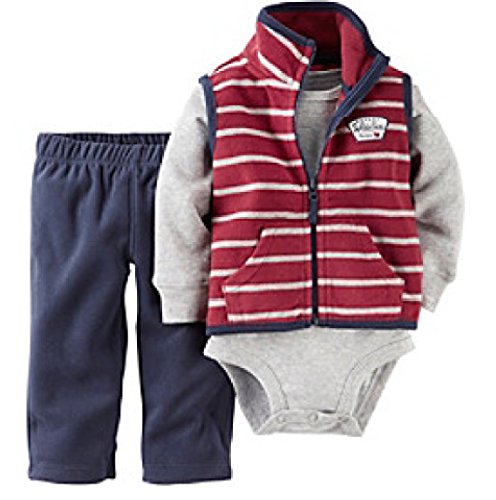 Carter's(カーターズ) ベビー ボーイズ フリース ベスト / ボディスーツ / ロングパンツ 3点セット (ボーダー) Baby Boys' 3-Piece Vest Bodysuit & Pants Set
