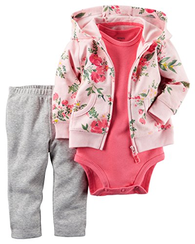 Carter's(カーターズ) ベビー ガールズ コットン パーカー / ボディスーツ / ロングパンツ 3点セット (花柄 / ピンク) Baby Girls' 3-Piece Set (3M(50))
