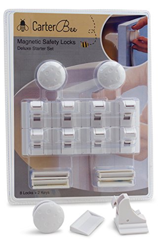 10 Piece Child Safety Magnetic Cabinet Lock Set by CarterBee for Kitchen Cabinet Doors and Drawers, Baby Proof Deluxe Set, 8 Locks + 2 Keys, No Tools Needed, 100% Satisfaction A-Z Guarantee [並行輸入品]