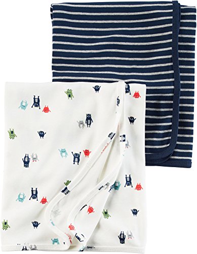 Carter 's Baby Boys ' 2 - Pack Monsterおくるみブランケット カラー: ブルー
