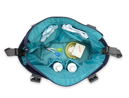 Spacious Main compartment with separate storage areas;3 exterior pockets for easy access to mom's and baby's needs;Tall Top Handles and Stroller Loops;Coordinating Diaper Change Pad;Metal Carters Logo Plate