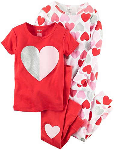 Carter 's Girls ' 4?Piece Heart Print PJ Set カラー: レッド