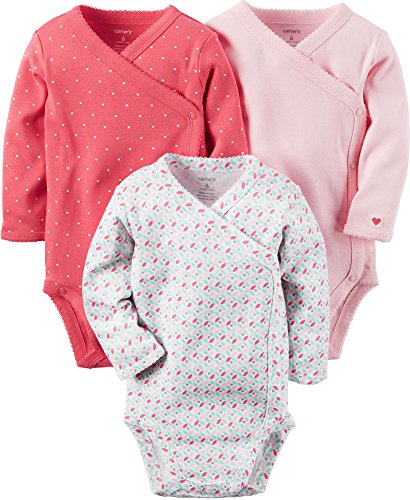 カーターズ(Carter's)女の子用優美なハートフラワー長袖前開きボディースーツ3枚セット (newborn(-55cm)) [並行輸入品]