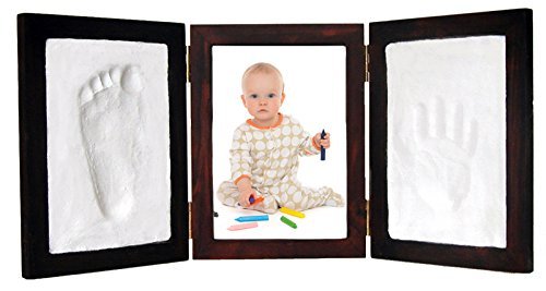 Includes soft, pliable, air-drying clay; No Mixing; No Baking;The clay is non-toxic, safe, easy to use & dries to a stone-like material.;Recommended Ages: 0-3yrs (and older if only displaying hand impressions).;Holds one 5x7 inch photo & two 4.5 x 6.5 inch clay impressions.;Available in Desktop: Black, Mahogany, Natural; or Wall Mount: White, Black