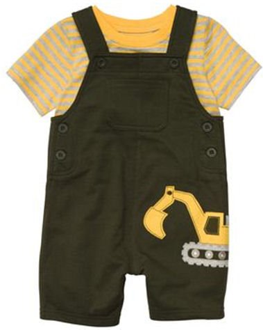 ■商品説明■イエロー×グレーのボーダーTシャツ&男の子が大好きなショベルカーのアップリケが可愛いショートオールのカーターズらしい素敵なセットアップ