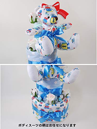 (キャスキッドソン) Cath Kidston 正規品 オムツケーキ,3段 3点セット おくるみ+ボディスーツ+ファーストベア+パンパース (オムツMサイズ, 3.Robot(半袖男の子用))