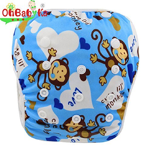 - OHBABYKA One Size Baby Swim Diaper Pant Washable Swim Diaper Pool Pant Cute Monkeys (Blue Monkey)