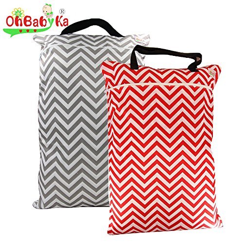 2PCS Large Wet Dry Hanging Pail Bag for Baby Cloth Diaper or Laundry , Grey Red Wave by OHBABYKA