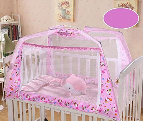- CdyBox Zippered Baby Toddler Nursery Crib Bed Canopy Mongolia Pack Foldable Mosquito Net Tent with Stand (Pink)