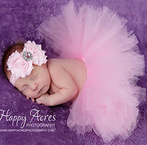 ベビー 用 チュール スカート コスプレ 衣装 赤ちゃん 新生児 ヘアバンド 付 出産祝い 百日記念 寝相アート 写真 撮影 (ピンクA)