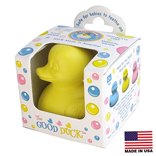 The World's safest Rubber Duck and the only Rubber Ducky a baby should teethe on.;PVC Free, BPA Free, Lead Free, Phthalate Free, Paraben Free, Latex Free and Paint Free.;Non-Toxic Food and Medical Grade Resin is soft and completely sealed.;The perfect size for little hands and floats upright in the tub.;Packaged in a Beautiful Gift Box and 100% Manufactured in the USA.