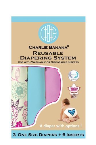 Charlie Banana 2-in-1 Reusable Diapering System, 3 Diapers plus 6 Inserts, Peony Blossom, One-Size by Charlie Banana [並行輸入品]