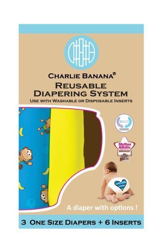 Charlie Banana 2-in-1 Reusable Diapering System, 3 Diapers plus 6 Inserts, Monkey Doo, One-Size by Charlie Banana [並行輸入品]