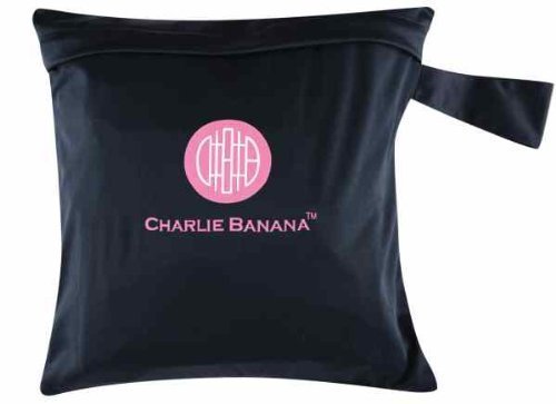 Charlie Banana Washable Diaper Tote Wet Bag (Black w/Pink) by Charlie Banana
