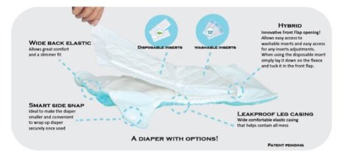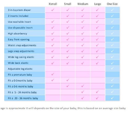 Polyester;Package contains 6-pack of Newborn size Cloth Diapers with 6 reusable inserts;Snap Closure;Leak proof;Avoid the use of bleach, fabric softener, vinegar, oils, vaseline and diaper cream.