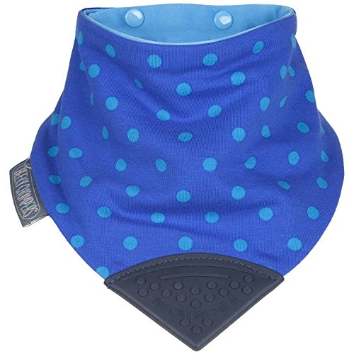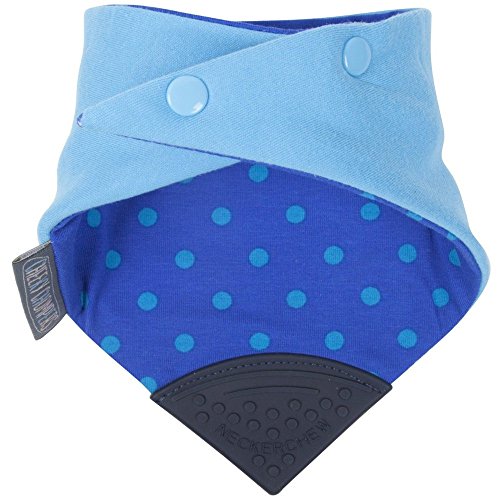 Le Neckerchew - Polka Dot Blue - Bavette avec anneau triangulaire de dentition attachè de Cheeky Chompers
