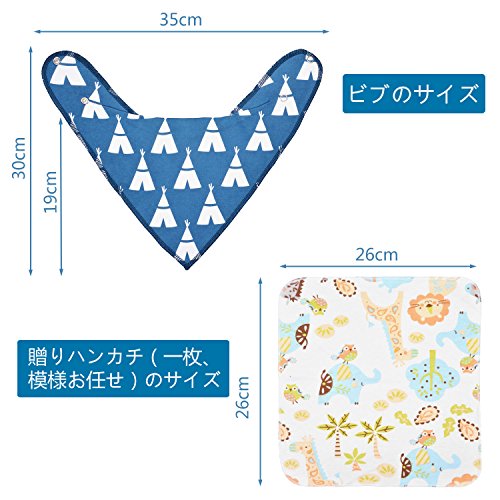 - 【パッケージ内容】ビブ8枚+ハンカチ1枚(贈りもの、模様はお任せ、ご了承ください)