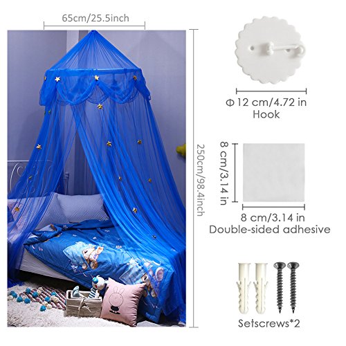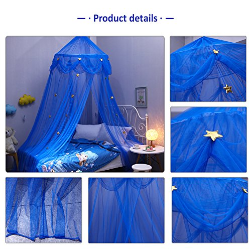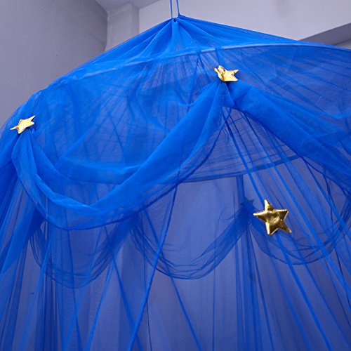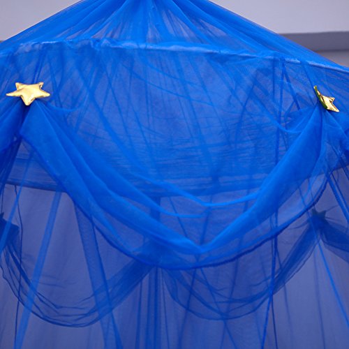 アップグレード子供のブルードリームスターモスキートネット かわいい天蓋カーテン 天井のヨーロッパの蚊帳 お姫様ベット ブルー お星様 韓国式