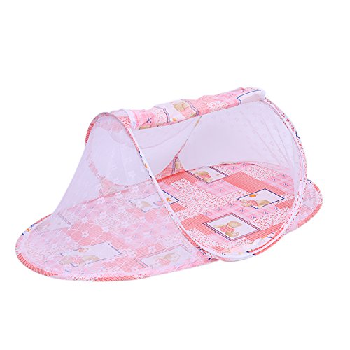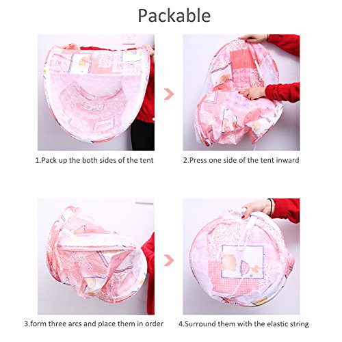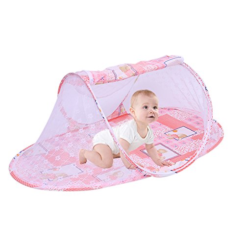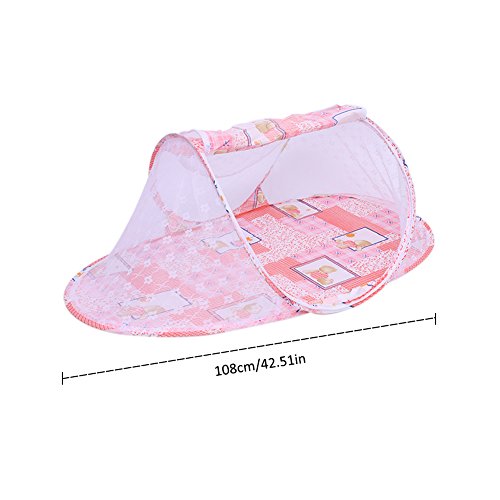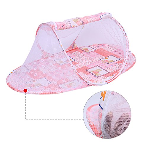 Cheng-store 簡単収納折りたたみ ベビー 蚊帳 ワンタッチ コンパクト 携帯用 ベビーベッド用蚊帳 良質船種蚊帳 ジッパーネット 蚊対策 虫よけ 夏 必需品 お出かけ 持ち運びに便利 ピンク