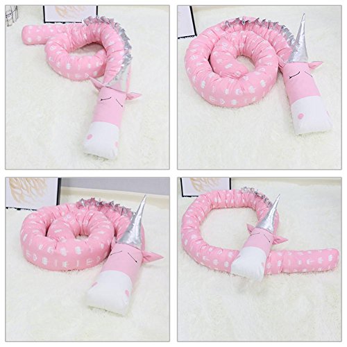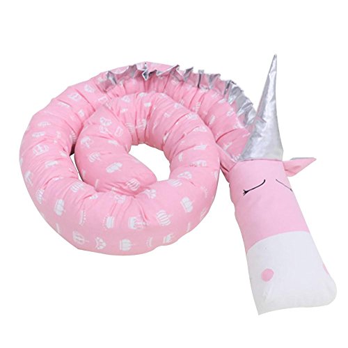 Cheng-store ピンクユニコーン チャイルドベッド安全クラッシュバリア ベビーベッドバックガードディフェンダーピロークッションノット ピローノット ベビークラッシュプロテクターベビーベッド 3メートル