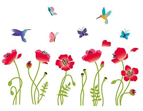 Radiant Poppies Decorative Peel & Stick Wall Art Sticker Decals by CherryCreek Decals [並行輸入品]