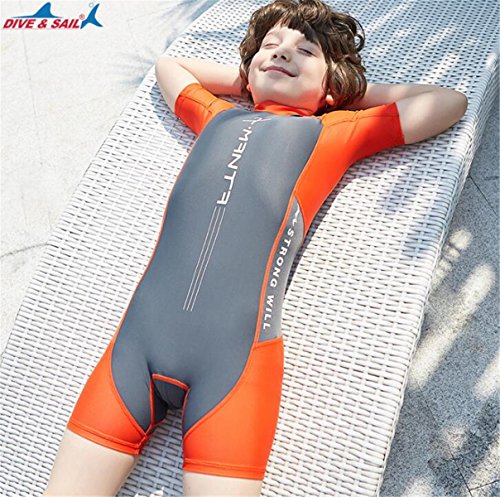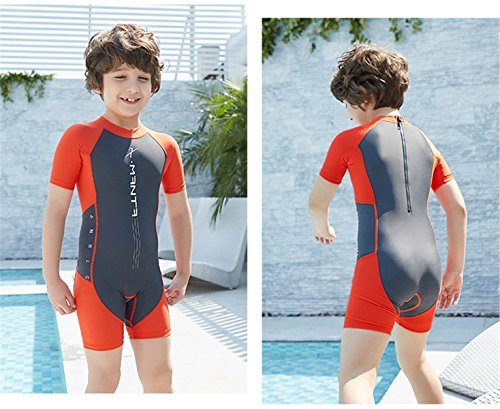 (チェリーレッド) CherryRed 子供ウェットスーツ キッズフルスーツ 日焼け止めの水着 連体 防寒保温 半袖 スイムウエア 男の子 女の子 速乾性 オレンジ XL