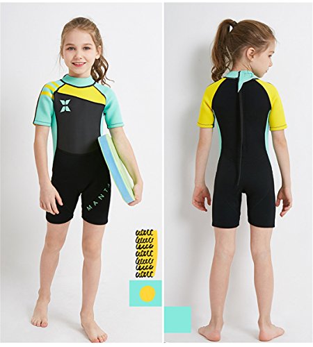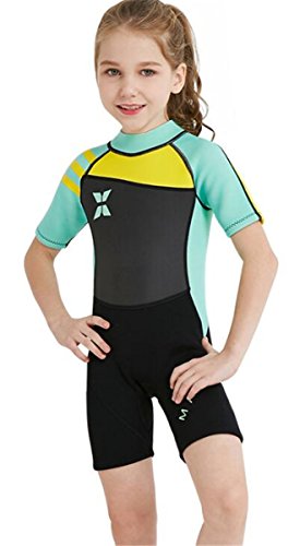 (チェリーレッド)CherryRed 2.5mm 子供ウェットスーツ キッズスイムウエア 日焼け止めの水着 連体 防寒保温 男女兼用 半袖 スイムウエア 3色展開 緑 XL
