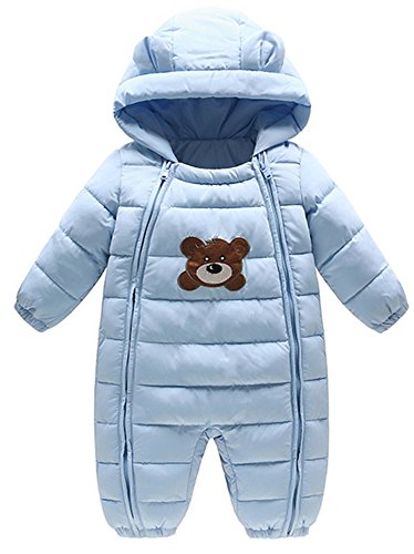 (チェリーレッド)CherryRed ベビー服 新生児 カバーオール 前開き ふわふわ 中綿 フード付き 寒さ対策 青 90