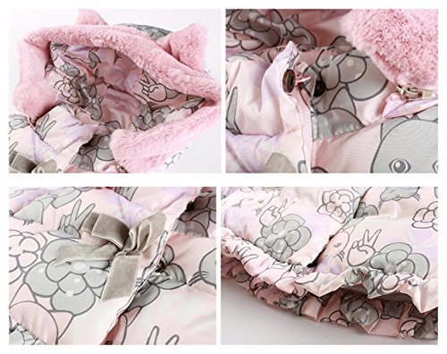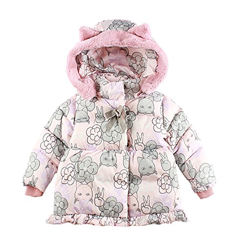 (チェリーレッド)CherryRed ベビー服 女の子 中綿ジャケット フード付き 猫耳 プリント ポシェット付 110