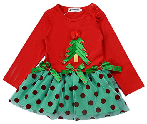 (チェリーレッド)CherryRed ベビー服 女の子 クリスマスツリー 衣装 ワンピース チュール 水玉模様 リボン 90