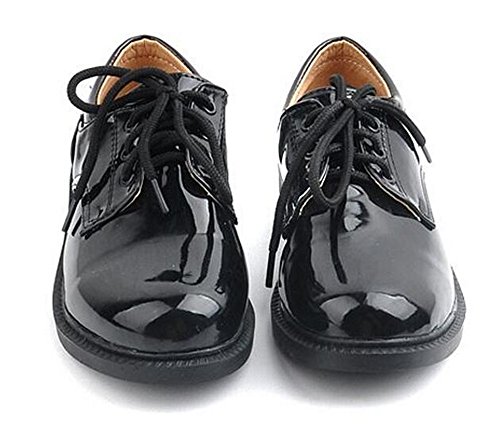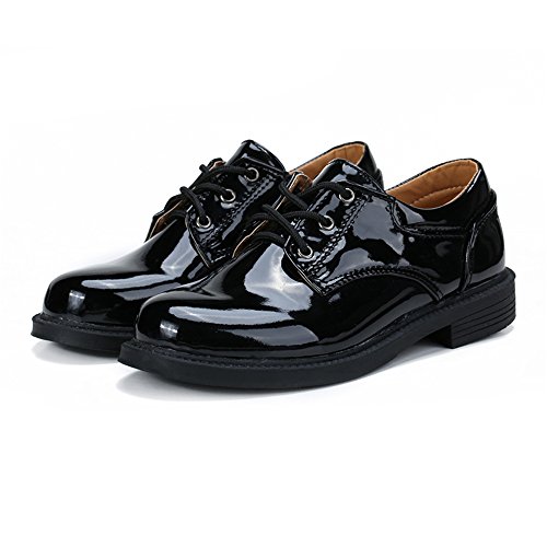 (チェリーレッド)CherryRed 子供靴 フォーマルシューズ レースアップ エナメル 黒 42