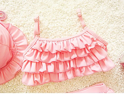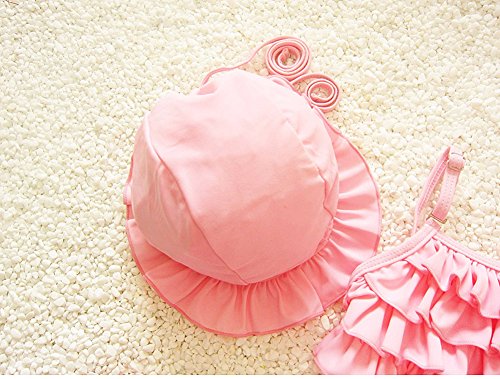 (チェリーレッド) CherryRed キッズ 水着 三点セット 水着上下+帽子 スポーツ フィットネス水着 海水浴 プール 可愛い XXL ピンク