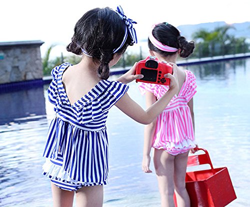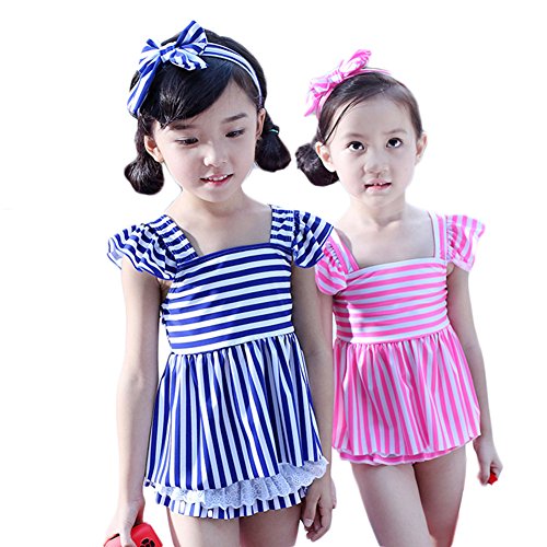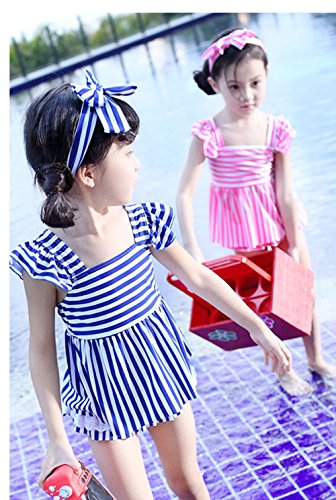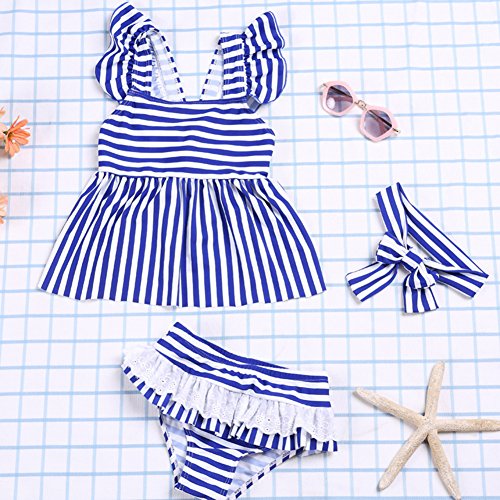 (チェリーレッド) CherryRed ガールズ ベビー 女の子 水着 ビキニ 子供用 ビキニ水着 可愛い ボーダー 三点セット L ブルー