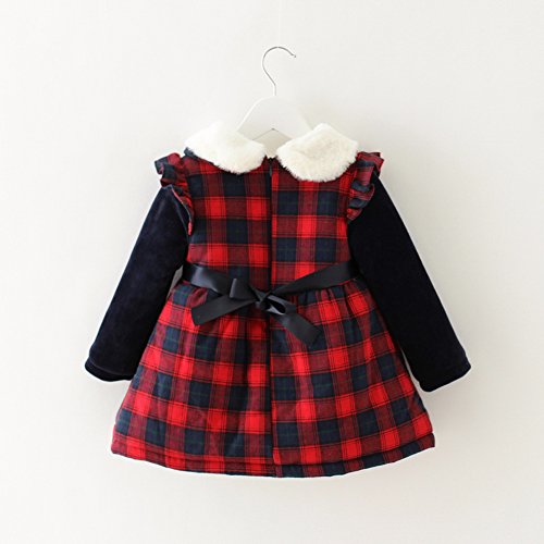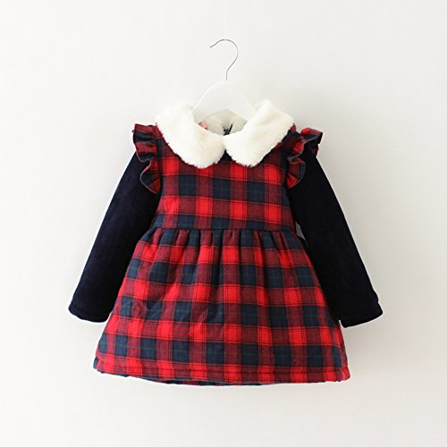 (チェリーレッド) CherryRed ベビー 女の子 防寒対策 綿服 スウェット ワンピース チェック 厚手 可愛い 暖かい 遊び着 普段着 90 レッド
