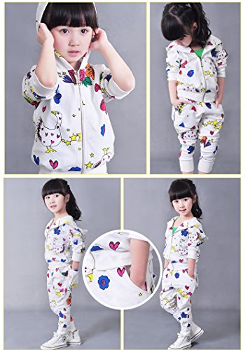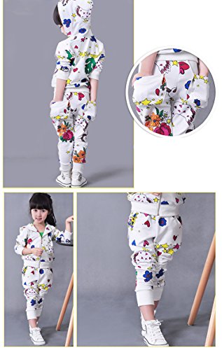 (チェリーレッド) CherryRed 子供用 女の子 ジュニア キッズ ファション スウェット スエット ルームウェア パーカー スポーツ カーディガン 花柄 上下セット 二点セット 可愛い ホワイト 120
