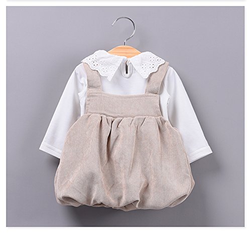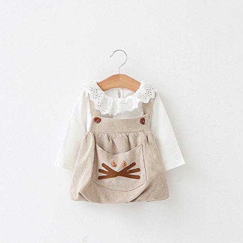 (チェリーレッド) CherryRed 子供服 ワンピース 女の子 フォーマル コットン 長袖 フレア 春 秋 二点セット サロペットスカート 90 カーキ