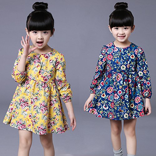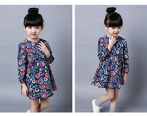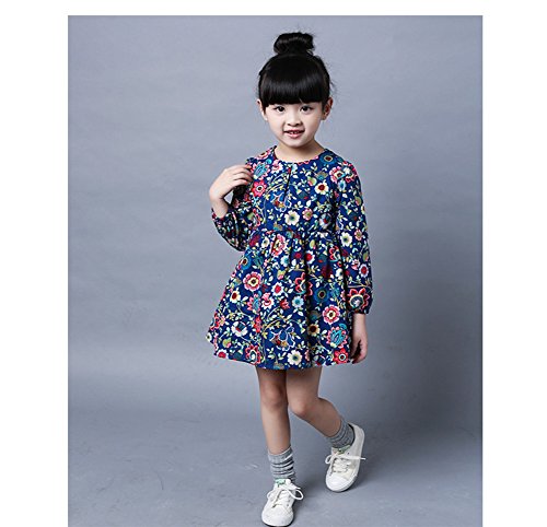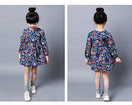 (チェリーレッド) CherryRed 子供服 ワンピース 女の子 フォーマル 花柄 長袖 コットン 春 秋 入園式 入学式 110 ブルー
