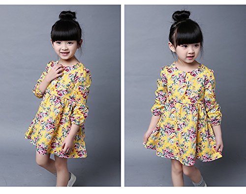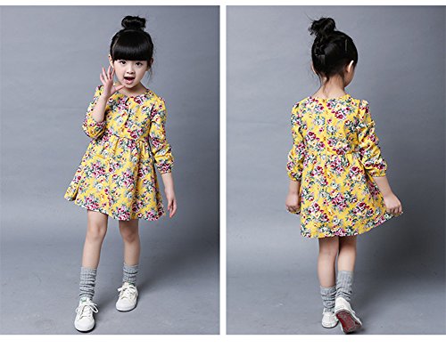 (チェリーレッド) CherryRed 子供服 ワンピース 女の子 フォーマル 花柄 長袖 コットン 春 秋 入園式 入学式 110 イエロー