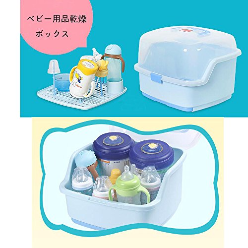 Cherryfly ミルクボックス ほ乳びんラック コンパクト 哺乳瓶 消毒 清潔ラック ベビー用品乾燥ボックス ベビー哺乳瓶ラック 収納ボックス 持ち運びに便利(ブルー)