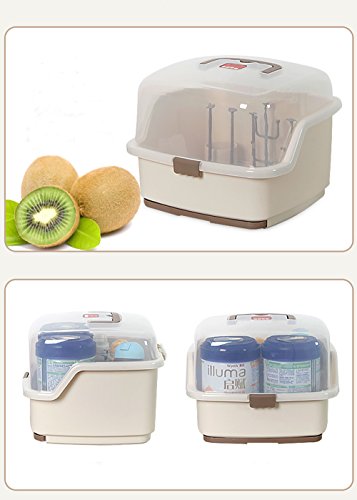 Cherryfly ミルクボックス ほ乳びんラック コンパクト ベビー哺乳瓶ラック 哺乳瓶 消毒 清潔ラック 大容量 ベビー用品乾燥ボックス 収納ボックス 持ち運びに便利 (カーキ)