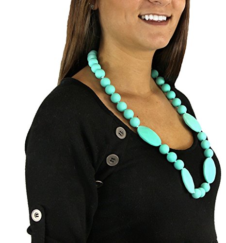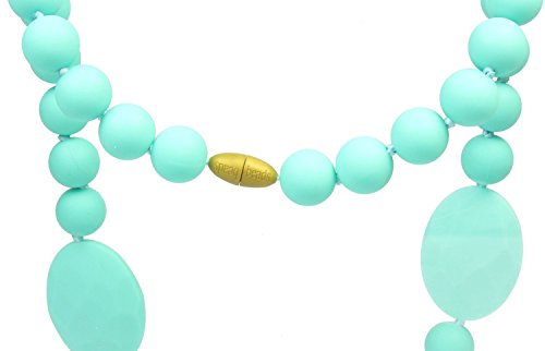 Both moms and infants can be happy with our Chewbeads Perry Necklace, a two-in-one fashion accessory and teething toy. This generous 30 inch beaded necklace is crafted from 100% safe silicone beads, designed to replicate the feel of pacifiers and nipples. Free of harmful substances, such as, BPA, phthalates, cadmium, lead, and metals, our Chewbeads Perry Necklaces are completely safe for a baby to chew on and play with. The necklace is easily cleaned with dish soap, water, and a cloth, and is completely dishwasher safe. It's the perfect choice to satisfy those chomping children!