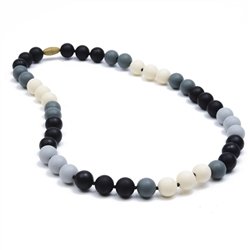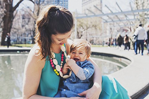 The Chewbeads Bleeker Necklace is a stylish and baby-safe accessory for moms;Colorful, fashionable, non-toxic, and perfect for baby to touch, tug, and chew;Gives your baby a safer alternative to chewing on metal jewelry, hair, or glasses;Can also be used as a sensory tool to keep baby's hands occupied during nursing;Breakaway clasp for added safety