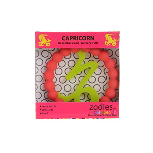 Zodies? Teether by Chewbeads Baby?;100% silicone teething ring; No BPA, no phthalates, no cadmium, no lead, no metals;Soft on babies gums and emerging teeth; Flexible design with multiple textures;Easily cleaned with dish soap and water, also dishwasher safe;Bright colorful sign depicts the signs of the zodiac; Attributes and description of each sign included on the individual packaging