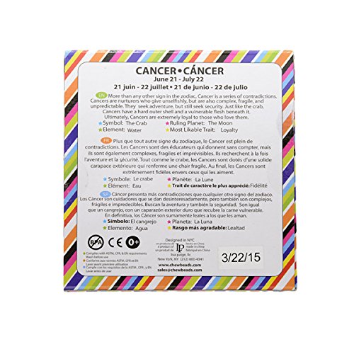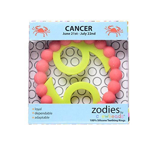 Zodies? Teether by Chewbeads Baby?;100% silicone teething ring; No BPA, no phthalates, no cadmium, no lead, no metals;Soft on babies gums and emerging teeth; Flexible design with multiple textures;Easily cleaned with dish soap and water, also dishwasher safe;Bright colorful sign depicts the signs of the zodiac; Attributes and description of each sign included on the individual packaging