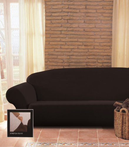 Chezmoi Collection Brooks Micro Suede 4-Way Stretch Slipcover Sofa, Black