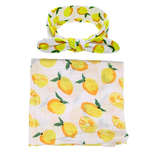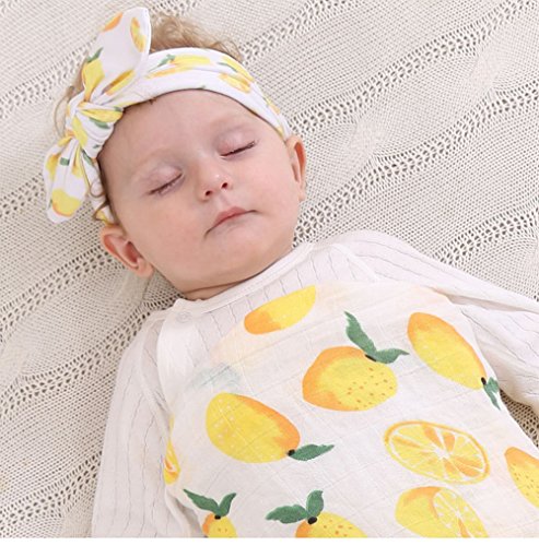 ベビーブランケット, Chickwin柔らかく居心地の良い新生児の綿多機能ブランケットスワドルベッドシートバスタオル+ 1本かわいいヘッドバンド (マンゴーセット)
