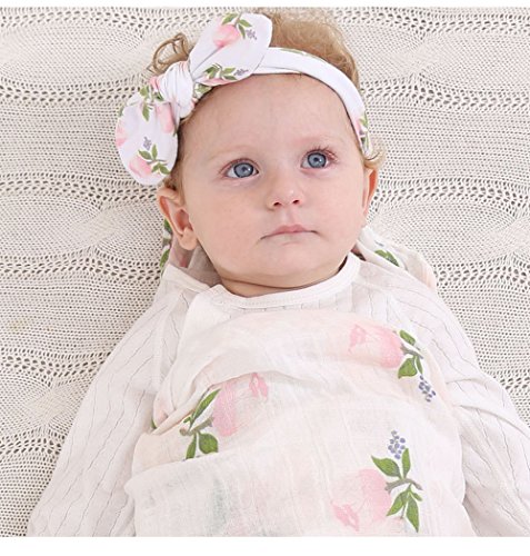 ベビーブランケット, Chickwin柔らかく居心地の良い新生児の綿多機能ブランケットスワドルベッドシートバスタオル+ 1本かわいいヘッドバンド (ピンクフラワーセット)
