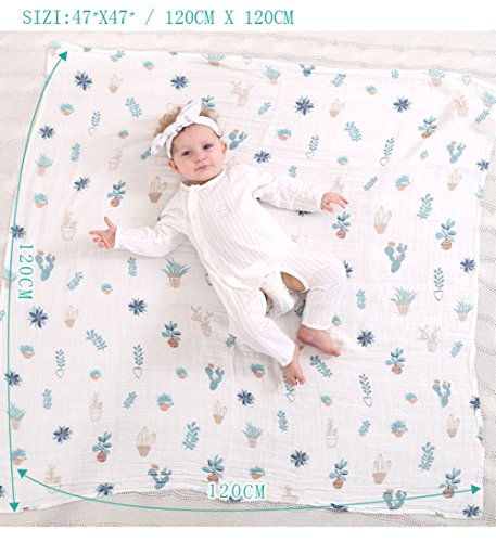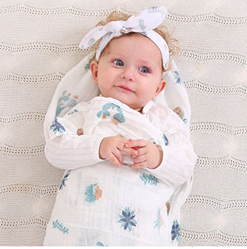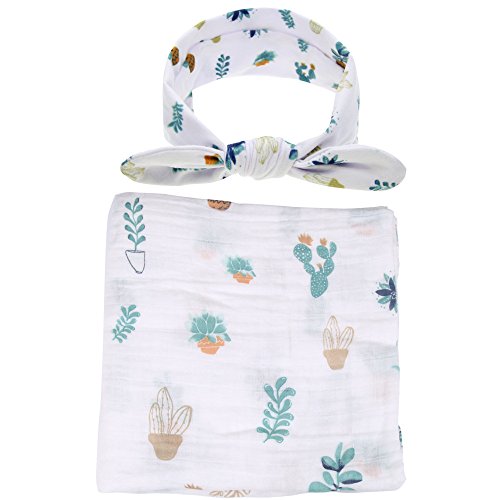 ベビーブランケット, Chickwin柔らかく居心地の良い新生児の綿多機能ブランケットスワドルベッドシートバスタオル+ 1本かわいいヘッドバンド (サボテンセット)
