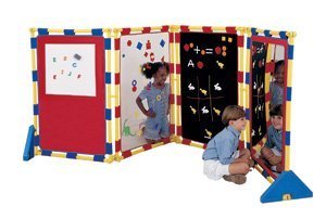 Includes porcelainized magnetic dry erase panel, plus fuzzy loop, transparent and mirror play panels
